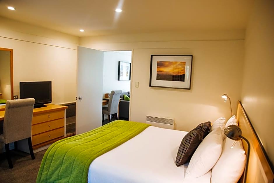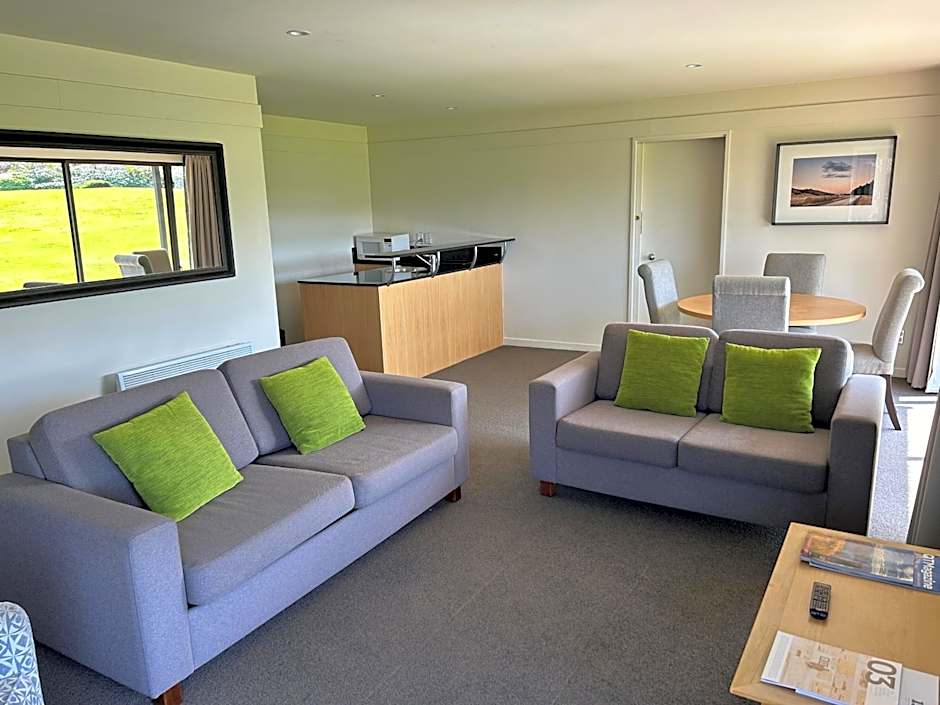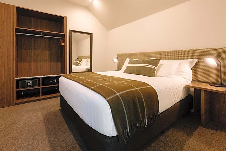 Edgewater Lake Wānaka's two-bedroom apartments offer spacious comfort and stunning views for up to six guests. Each apartment features an open-plan kitchenette, dining, and living area nestled between two bedrooms containing king sized beds, each with its own bathroom. With 80 to 84 square yards of space, you can enjoy independence while sharing with friends or family. In-room laundry and nearby free parking add convenience to your stay. Apartments can be upstairs/downstairs combo or two rooms on same level.
